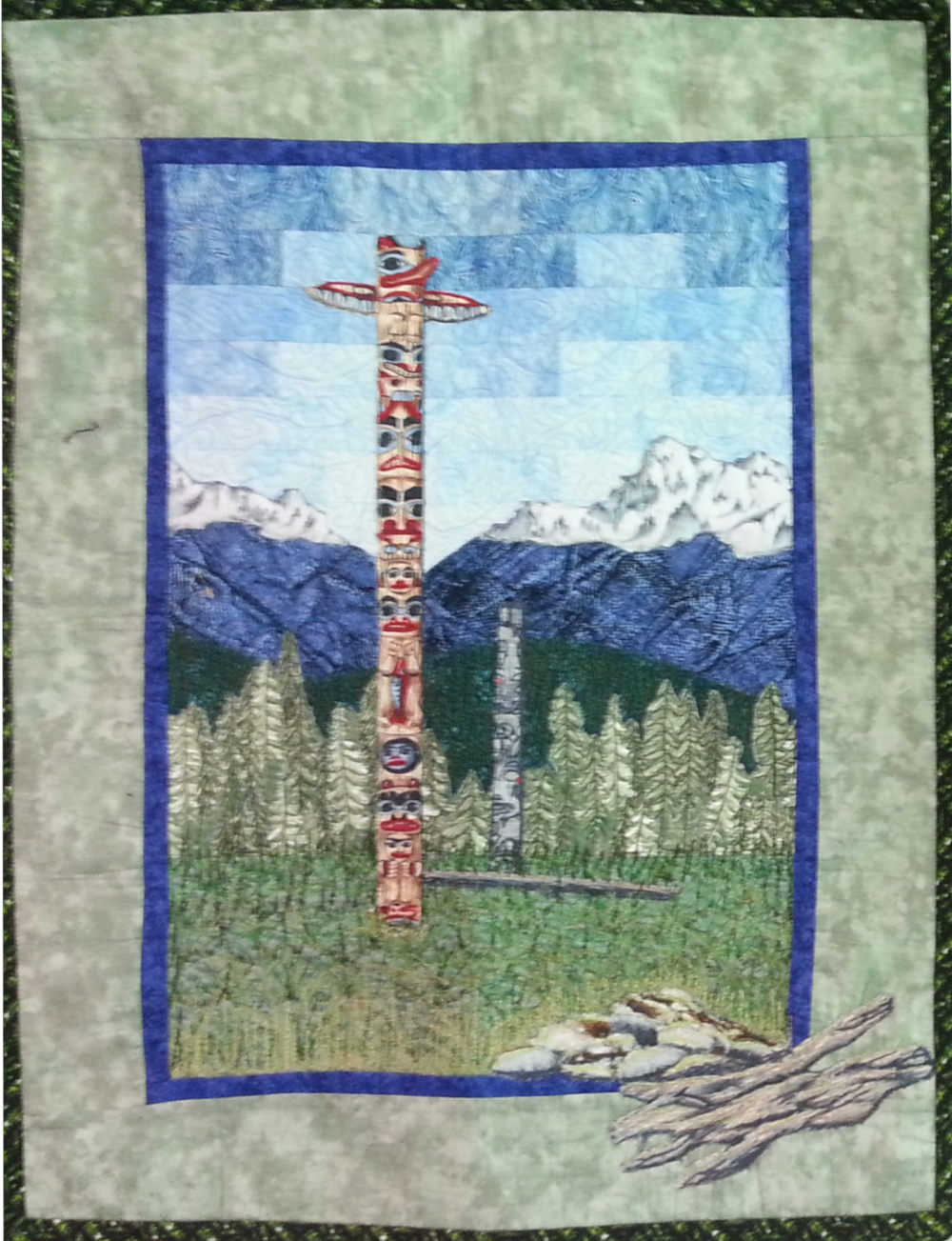 This is an original design I created for my son's family. The figures are machine appliqued and each block is thread painted.